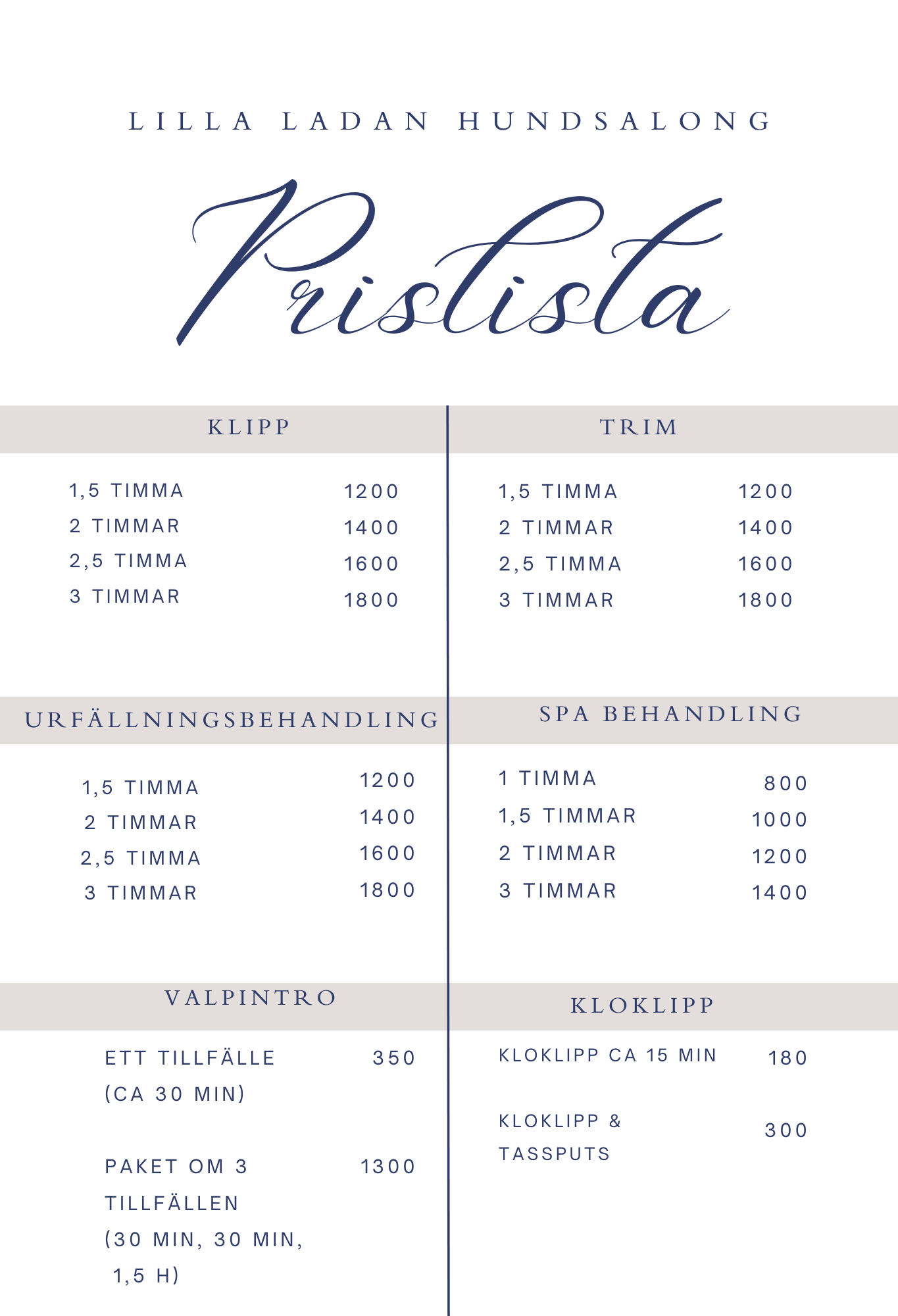 Om hunden är mycket smutsig, tovig eller aggressiv, kan tilläggskostnader tillkomma eller behandlingen behöva avbrytas – i sådant fall debiteras ändå grundpriset.